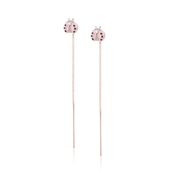 Srebrne pozłacane kolczyki pr.925 różowa biedronka z cyrkoniami - różowe złoto