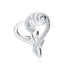 Srebrna zawieszka pr.925 serce z różyczką i białymi cyrkoniami