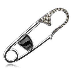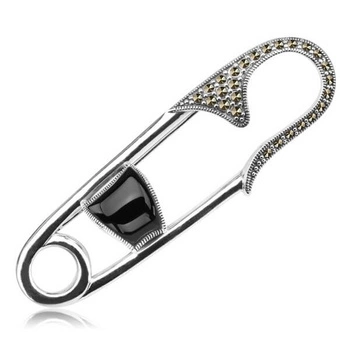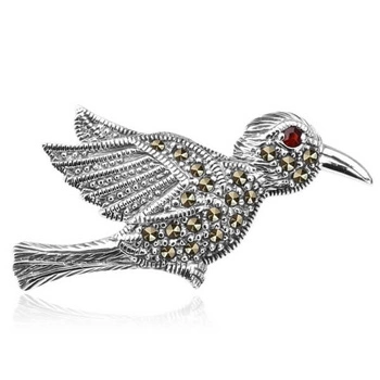 Broszka koliber srebrna z markazytami i kolorową emalią