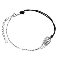 Srebrna pr.925 bransoletka z czarnym sznurkiem - pozłacany krzyż