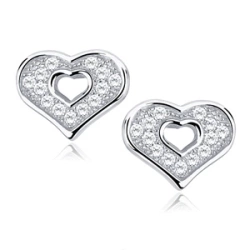 Srebrne kolczyki pr. 925 Cyrkonia microsetting serca rodowane