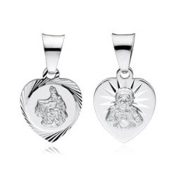 Srebrny medalik serce - Jezus / Matka Boska Szkaplerzna