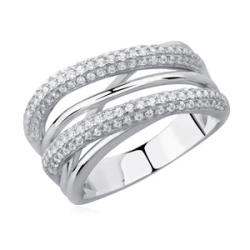 Srebrny pierścionek pr.925 z białymi cyrkoniami - wypukły, ażurowy