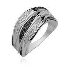 Podwójny pierścionek ceramiczny biały ze srebrnym (pr. 925) elementem - prostokąt z cyrkoniami