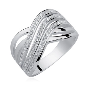 Srebrny, duży pierścionek X podwójny pr.925 cyrkonia biała