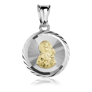 Srebrny medalik Matka Boska Częstochowska złocona