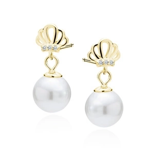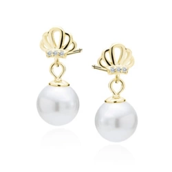 Srebrne pozłacane kolczyki pr. 925 perły z białą cyrkonią
