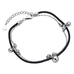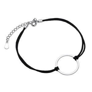 Srebrna pr.925 bransoletka z czarnym sznurkiem - pozłacane kółko