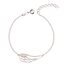 Srebrna bransoletka pr. 925 skrzydło z cyrkoniami, pozłacane różowym złotem