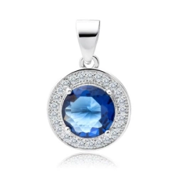 Srebrna zawieszka pr.925 okrągła szafirowa cyrkonia