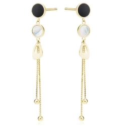 Srebrne kolczyki pr.925 - łańcuszki zakończone kulkami, czarny onyks i masa perłowa