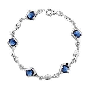 Srebrna modna bransoletka pr.925 Cyrkonia akwamarynowa - karmazycja