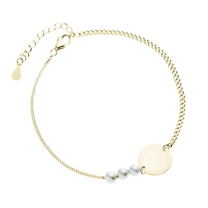 Srebrna pozłacana bransoletka pr.925 - okrągła blaszka, dwa rodzaje łańcuszka i perły