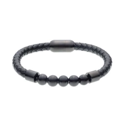 Sentiell Czarna Skórzana Bransoletka Męska z Turmalinami i Plecionym Paskiem