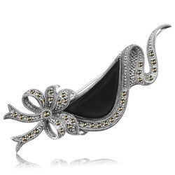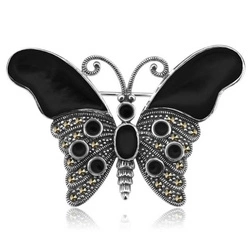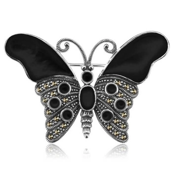 Broszka koliber srebrna z markazytami i kolorową emalią