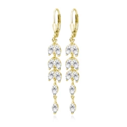 Srebrne pozłacane kolczyki ślubne pr.925 długie liście z cyrkoniami