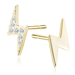 Srebrne pr.925 pozłacane kolczyki - błyskawica z cyrkoniami i błyskawica bez cyrkoni