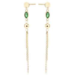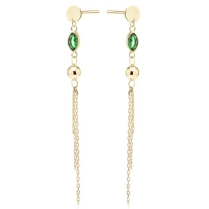 Srebrne pozłacane kolczyki pr. 925 ze szmaragdową cyrkonią, kulką i łańcuszkami
