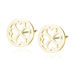 Srebrne pozłacane kolczyki pr.925 - koniczyna / serca w kole