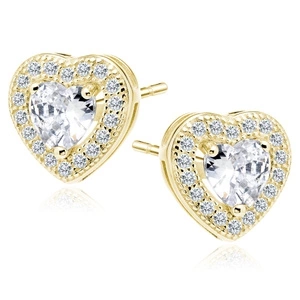 Srebrne pozłacane kolczyki pr.925 Cyrkonia biała - serca