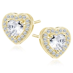 Srebrne pozłacane kolczyki pr. 925 Cyrkonia microsetting serca