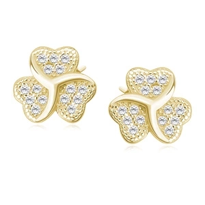 Srebrne kolczyki pr. 925 koniczynki z cyrkoniami, pozłacane