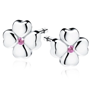 srebrne kolczyki pr.925 koniczynki z różową cyrkonią