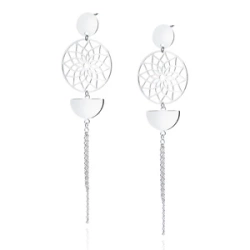 Srebrne kolczyki pr.925 łańcuszki z listkiem