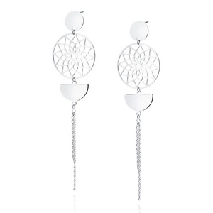 Srebrne (925) pozłacane kolczyki - kółko z łańcuszkami