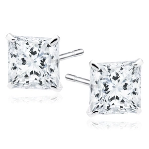 Srebrne kolczyki pr.925 cyrkonia biała 4 x 4mm kwadratowe