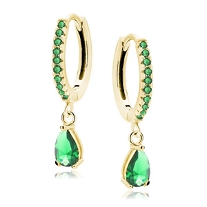 Srebrne pr.925 pozłacane kolczyki ze szmaragdową cyrkonią