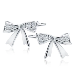 Srebrne kolczyki pr.925 kokardki z cyrkoniami