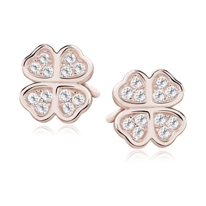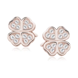 Srebrne kolczyki pr. 925 koniczynki z cyrkoniami - różowe złoto