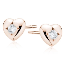 Srebrne pozłacane kolczyki pr.925 Cyrkonia biała - serca