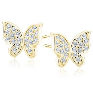 Srebrne pozłacane kolczyki pr.925 motyl z białymi cyrkoniami