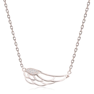 Srebrny naszyjnik pr.925 skrzydło z cyrkoniami, różowe złoto