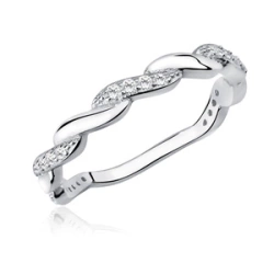 Srebrny delikatny, zaplatany pierścionek pr.925 z cyrkonią