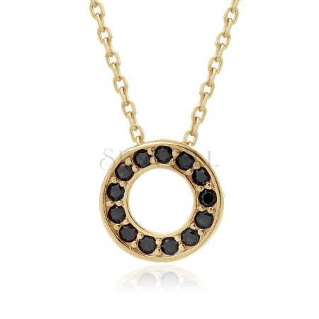 Srebrny pozłacany naszyjnik pr.925 z okrągłą zawieszką i czarnymi cyrkoniami