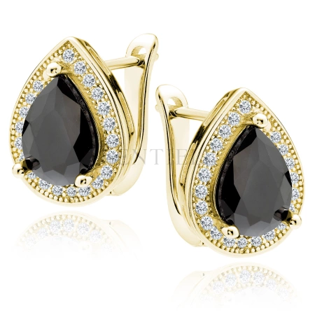 Srebrne pr.925 pozłacane kolczyki cyrkonia czarna