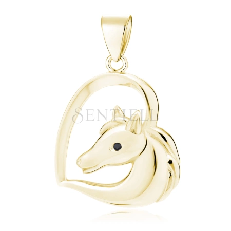 Srebrna pozłacana zawieszka pr.925 serce - koń z czarnym okiem