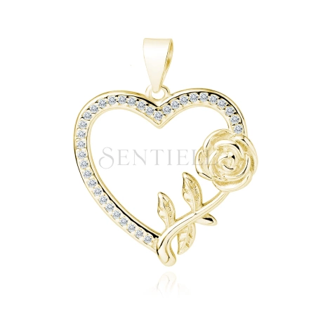 Srebrna pozłacana pr.925 serce z różyczką i białymi cyrkoniami
