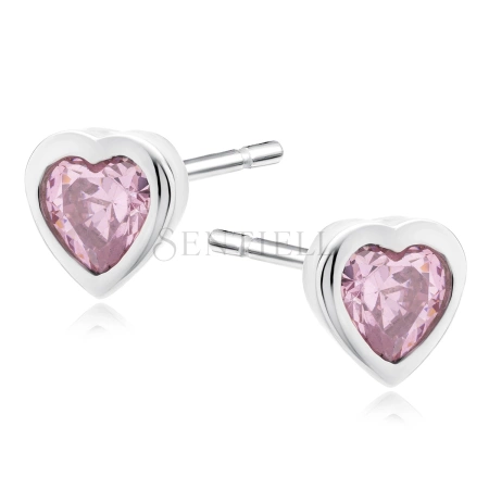 Srebrne kolczyki serca pr.925 Cyrkonia różowa serce
