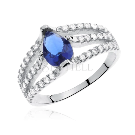 Srebrny pierścionek pr.925 cyrkonia biała i szafirowa
