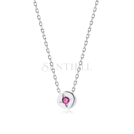 Srebrny naszyjnik pr.925 z okrągłą rubinową cyrkonią zawieszką