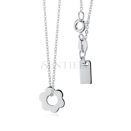 Srebrny naszyjnik pr.925 z zawieszką i blaszką przy zapięciu - kwiatek