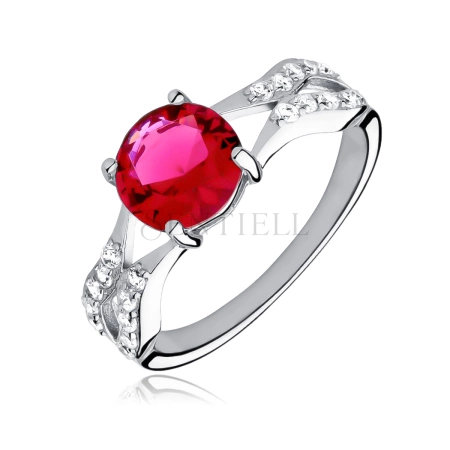 Srebrny modny pierścionek pr.925 Cyrkonia rubinowa