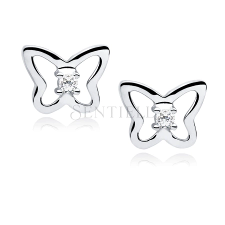 Srebrne kolczyki pr. 925 Cyrkonia biała motylki