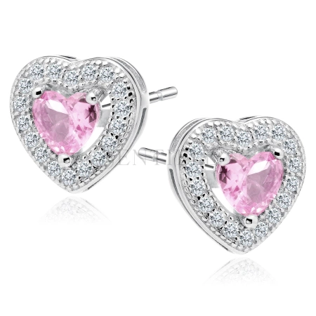 Srebrne kolczyki pr. 925 Cyrkonia różowa - serca