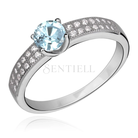 Srebrny pierścionek pr.925 cyrkonia biała i akwamarynowa