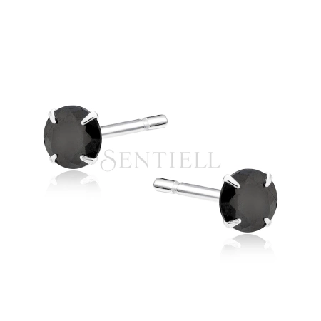 Srebrne kolczyki pr.925 Czarna cyrkonia okrągła średnica 4mm